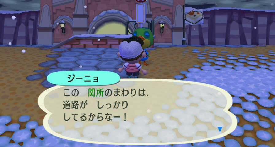 雪だるまベッドはもらったものの、見た目まるでツタンカーメンの棺の大きなやつにも見えるなーといまいち躊躇してるマァです(^^ 今回のどう森では、施設の近くで会話すると、その内容の会話が出やすいようですね。関所の前だと関所の話とか、自宅の前だと自宅の広さの話とか。あとクリスマスイブイブの話とかかなーり期日限定な会話も若干あるようで。まぁこの種の会話ネタは詰め込んでも詰め込んでも足りない感があるのだろうなーと思ったりします(^^; 会話ネタのオンラインアップデートは絶対Wii版であるんだろうなーと期待していたのですがなんとなくなさそうですね(^^; セキュリティ関係の問題とかあったのかも(というか今回は家具や服とかのグラフィック移植で手一杯だったのではないかという気がしているのですが(^^;) それはさておき、ちょこちょこと庭を整理する楽しみはあるんですけどね(^^ あと皆一度はやってるであろう、役所をスコップで突っつく一揆です(^^
