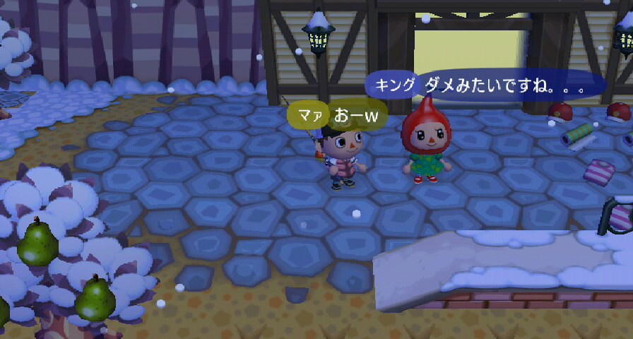 先ほどキングさんとこと、Wii版初WiFiでおじゃましましたー(^^ きれいに果樹園が揃ってるし、おうちの中も怪しいし、いやはやすごかったです(^^ でも少し遅くなってすみませんでした(^^; 正月になると比較的時間も合うかと思うので、またよろしくですー(^^
