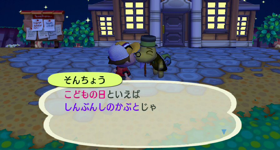博多どんたくに行けたら、久しぶりにDSですれ違い通信でも設定してみるかなーと思っていたのですがとてもじゃないが動けませんでした(^^; 街森のほうもちょこっとくらいですかねー。 なんとか村長さんからカブトとニンテンドーさんから鯉のぼりもらったとこですか。と、丁度そのあたりの写真は撮ってないな(^^; ちなみに、期間中ちえりちゃんも風邪だったらしい。お互い大変ですなー(^^;