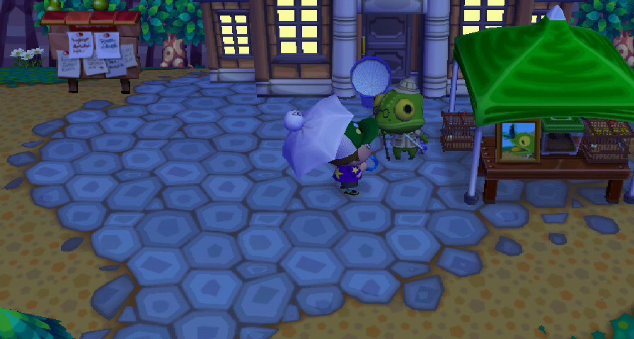 先週も少しだけですな。 たぬきちのお店の開店時間を変えたら、なかなかお店が開いてなくて、オレンジを売るにも一苦労なわけで(^^; というわけで少し前(おそらく先々週)に写した写真を少し。 ニンテンドーさんからてるてる坊主傘をもらいました(^^ 今回の傘はわりと立体的にできるのですな。そういえば折れた傘とかもあるので、異形の傘も作れるのかもしれぬ。 虫取り大会もあってたようですが、時間が合わずに不参加。しかし村長の友達は毎度濃いな(^^;