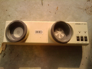 で、パソコン通信に興味を持ったが、当時の寮なんて個室じゃないし、寮内には公衆電話しかないし というわけで、夜な夜な寮の食堂にMacintosh一式を一抱えして持ち込んで音響カプラでパソコン通信をしてたわけです(^^;