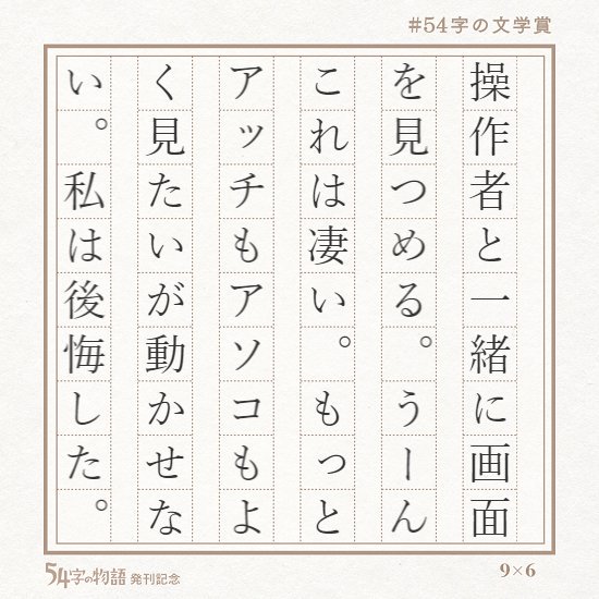 この段階ではまだオチをどうするかなと模索していた段階なのですが、今までの54文字と違って少し小話を織り込んでバックに長編がありそうな体にしようと思って、この後にいくつか小話をいれようとは考えました。