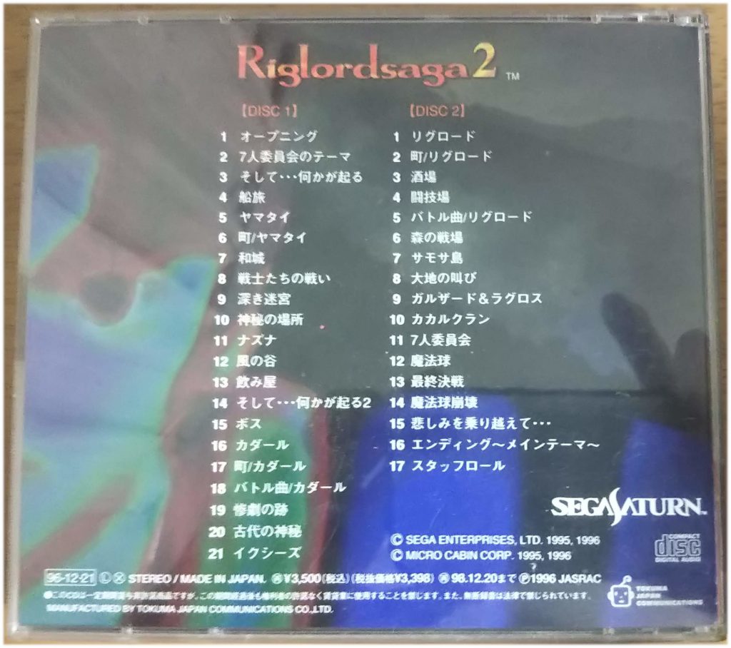 最近ほんと断捨離にこっていていろいろ始末つけるべきものを整理していたのですが、ネットで意外にリグロードサーガ2 オリジナルサウンドトラック(ゲームディスク側ではなく音楽集の方)のカバー写真が見つからなかったので、とりあえず上げておきます。