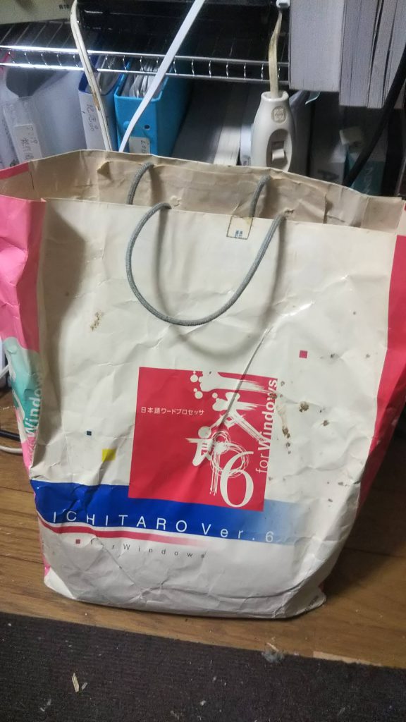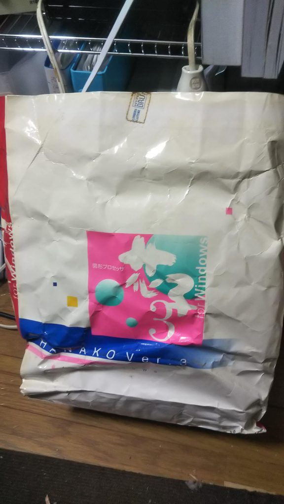 口元のテープを見る分には、どこかのパソコン店で何かを買った頃かねぇ。パッケージソフト全盛期か。