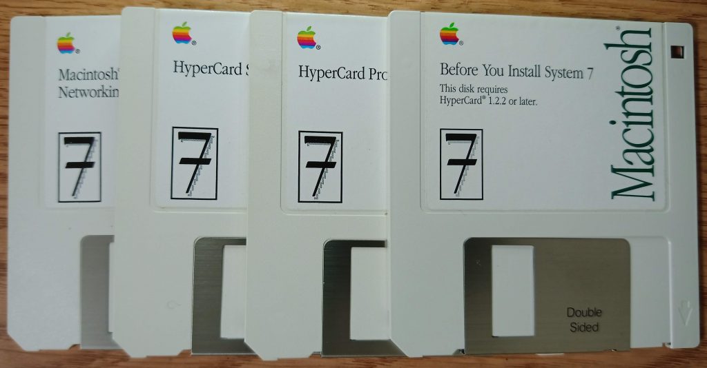 System7 これはOS単体で買ったやつだろう。HyperCard V1も標準添付しているみたい。旧MacOSではSystem7あたりが一番元気だったような気がする。