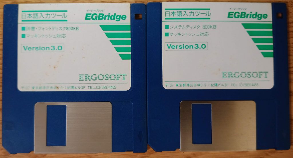 Macの日本語かな漢字変換システム。EGWordや他のバージョンのEGBridgeのディスクもあるだろう。