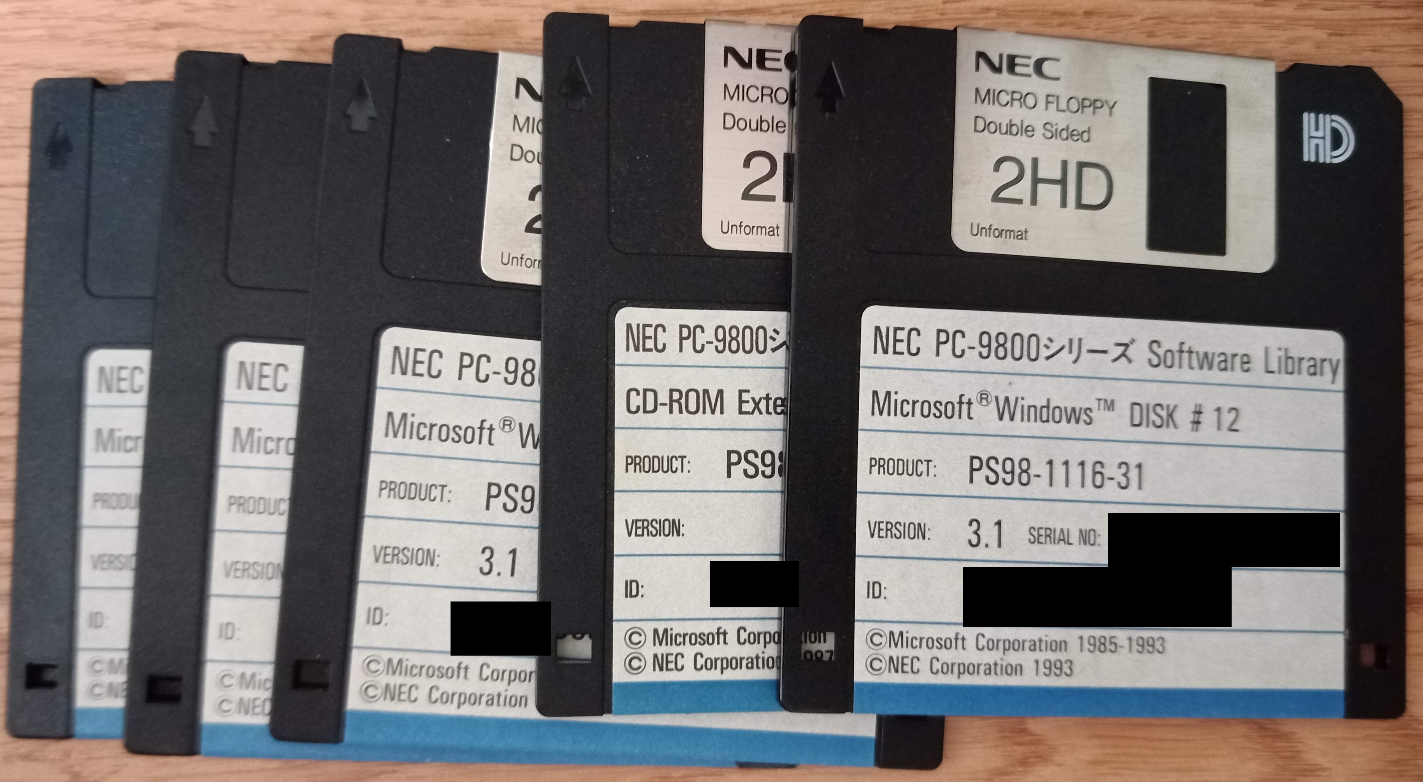 これも当時の職場でサポート用にライセンスしていたメディアを、もう使わないので消去してファイルバックアップとかに使っていたものだと思う。ラベルからすると サポート用の PC-9800のWindows 3.1なのかなぁ。