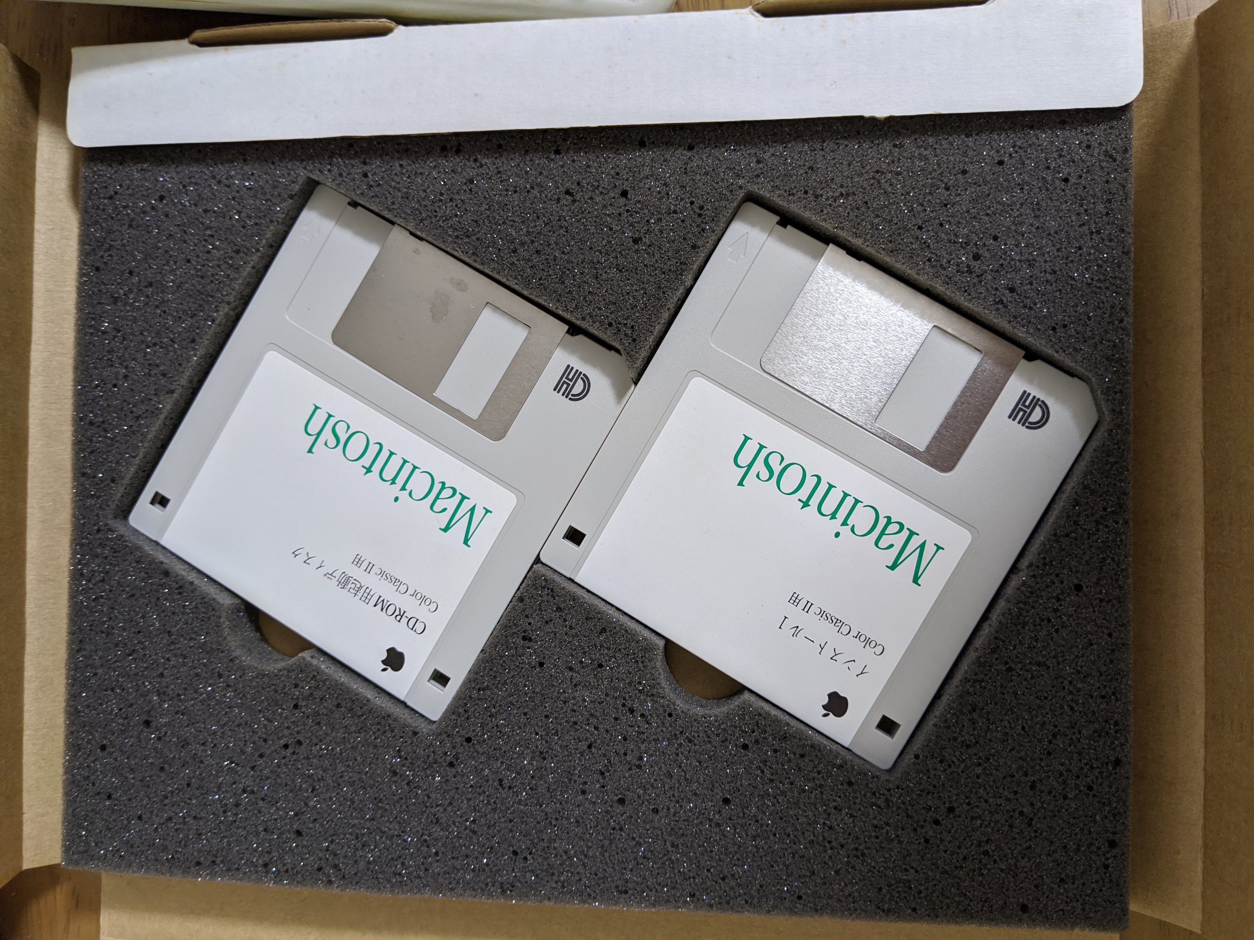さすがにFDの手持ちがそろそろ尽きてきた頃。MacOS(Color ClassicⅡ用)のFDを箱付きで。