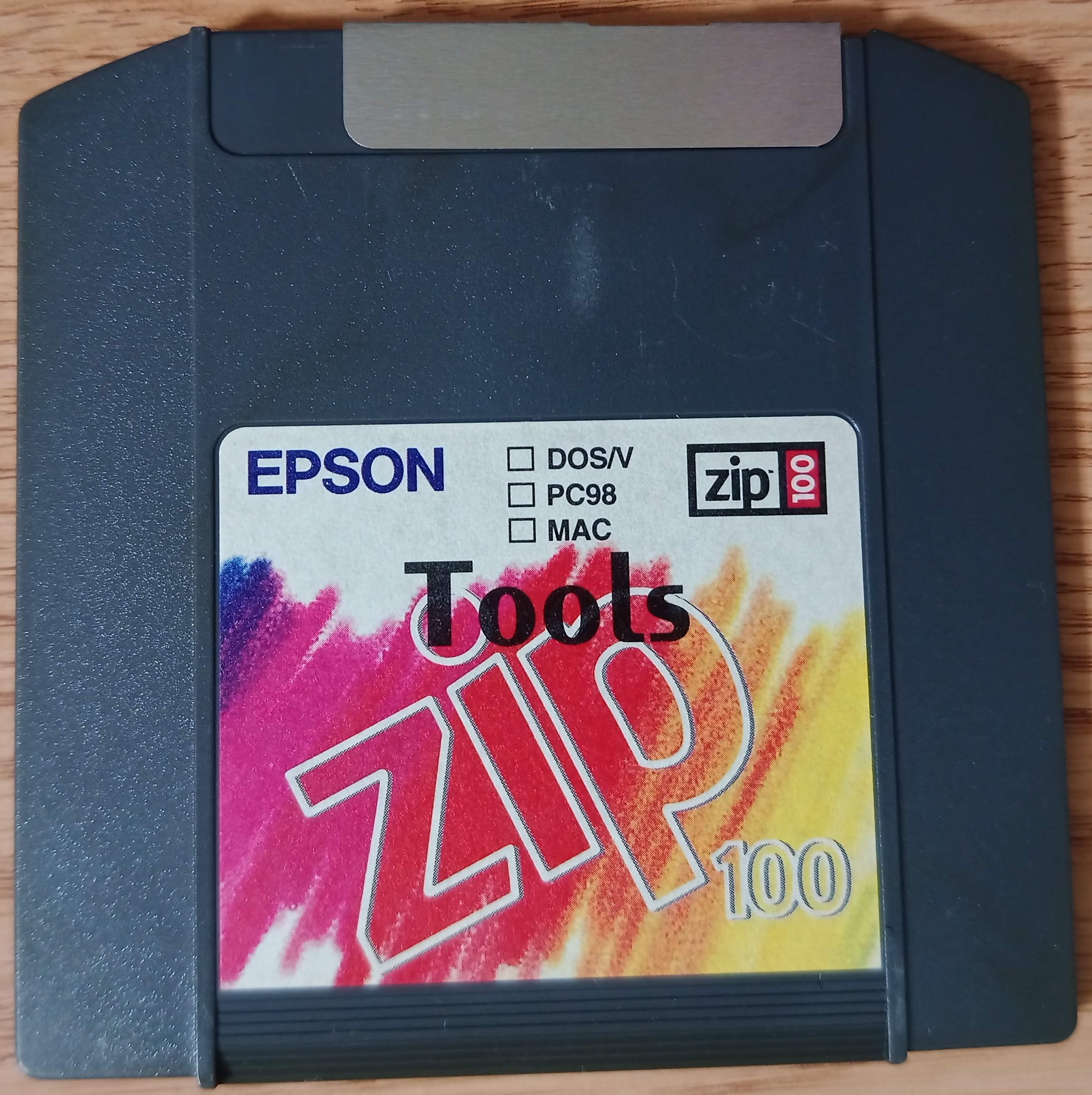 閑話休題。EPSONのZIPドライブの添付品です。FDでなくZIPに大きめのバンドルソフトとかが入っているんじゃないかなぁ。