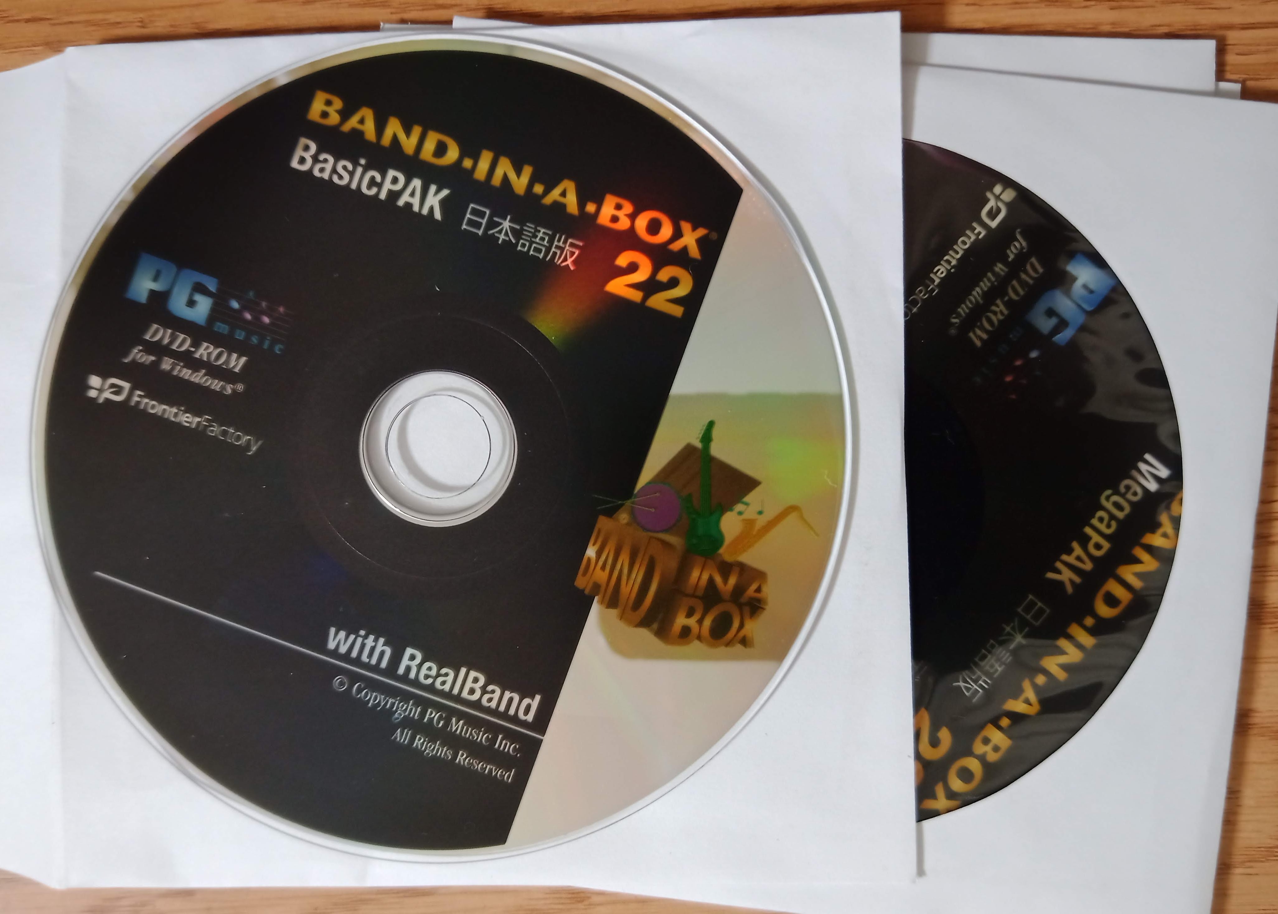 あんまりOSディスクばかりではつまんないのでアプリディスクを取り出したのだが、取り出しているケースが元々手前(比較的必要になるもの=OS再インストール)であるとともに、比較的最近買ったもの(しかし本当に新しいソフトはほぼすべてダウンロード販売なので、決して新しくもない)という性質上、出てきたのがBAND-IN-A-BOX 22。音楽自動作曲ソフトですね。アプリのBGM作りに使えないかとも思ったのだが、元々アート的才能は微妙なので使いこなせてないですが。