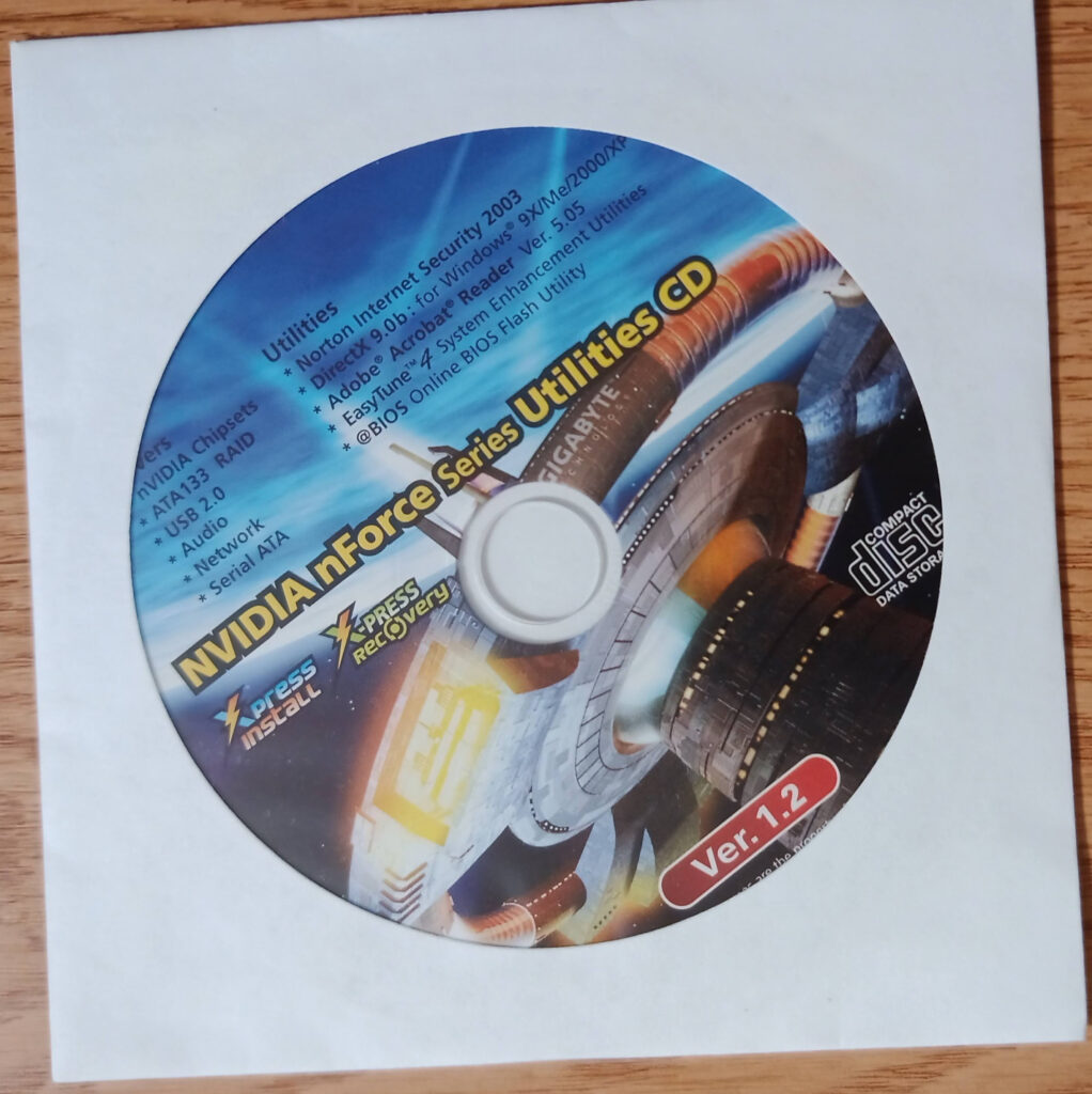 わりと普通の古いBTOパソコンか買ったGPUに添付されていたCDだと思う。この手のCDは濃いアート絵が付いてることが多いけど、なんとなく昭和の雑誌や図鑑についてた未来イラストとかとも通じる怪しいかっこよさはある。