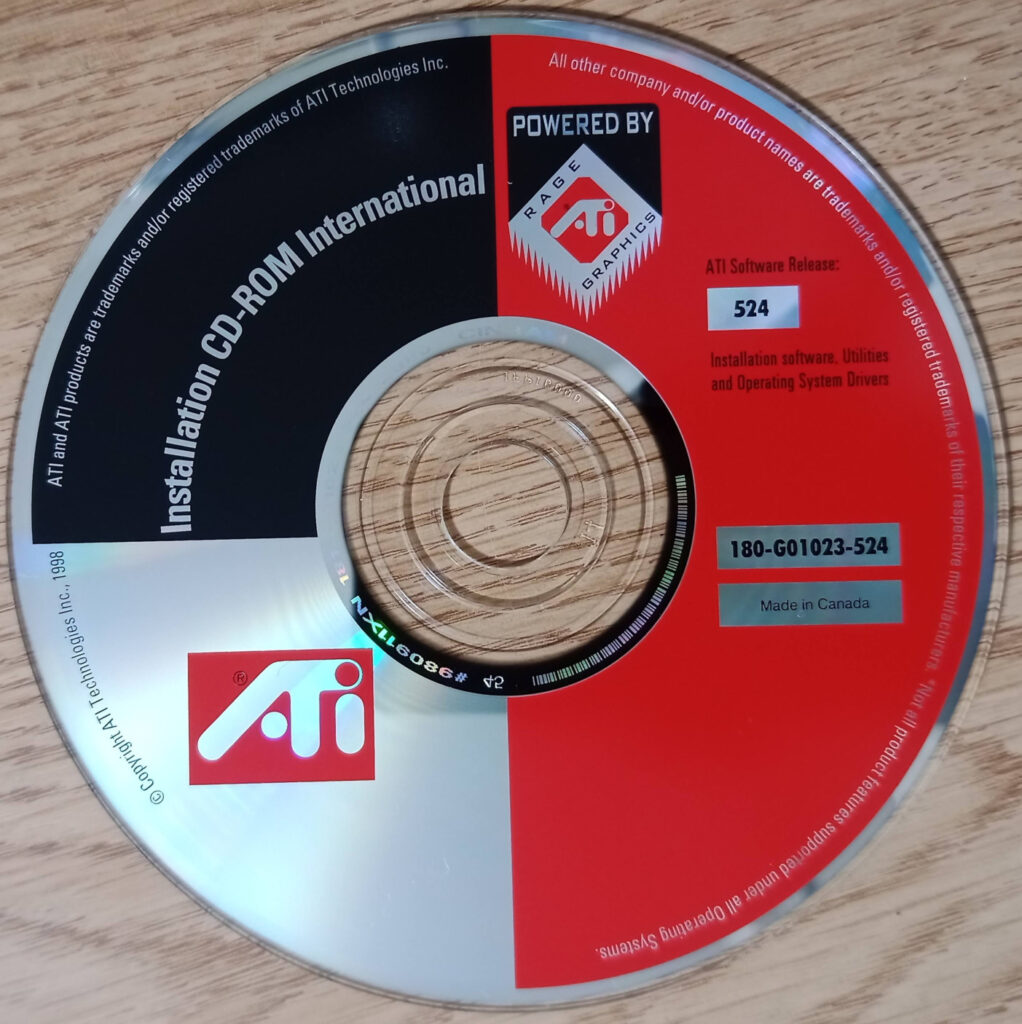 ATIのグラフィックボードのドライバーCD。この頃だとMac用のグラボのCDかもしれぬ。