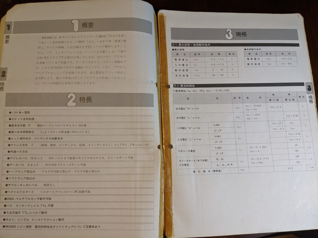 Motorola M-6800の富士通の互換セカンドソースCPUMPU MB8861のカタログです。
