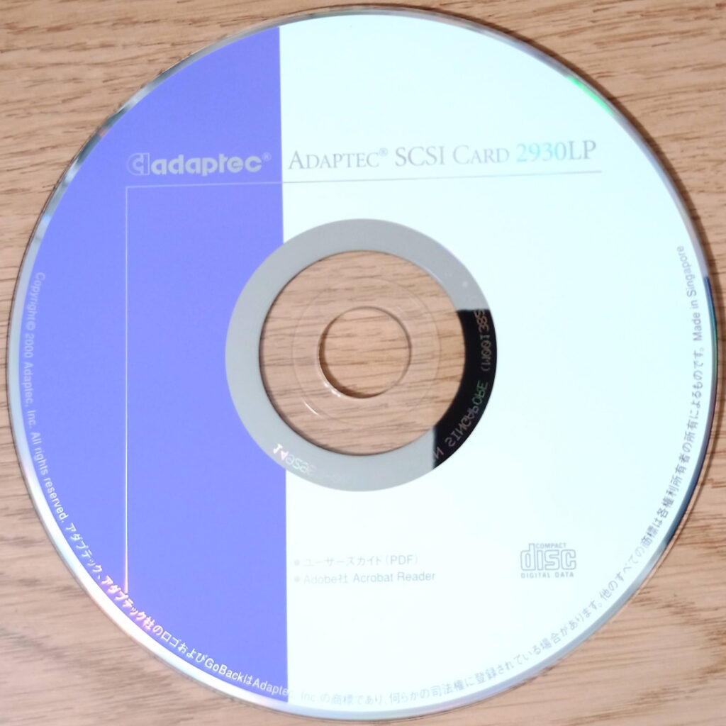 アダプテックのSCSIカードのドライバーCDですが、何か色合いがおしゃれだと思う。