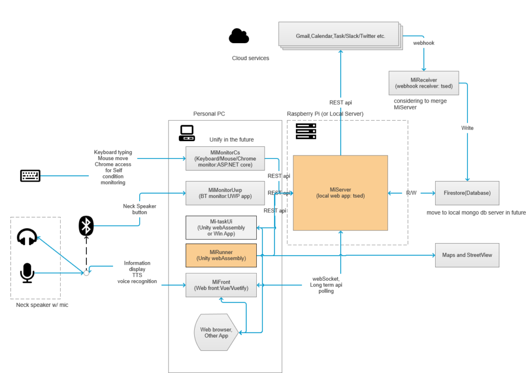 構想通りに個人管理アプリサービス部分をラズパイに移動。