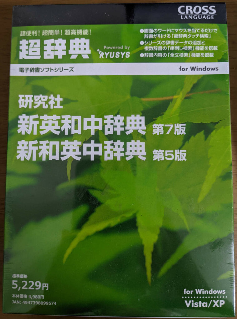 クロスランゲージの電子辞書。預かり物だったのか、なぜか未開封。中を開ければ当然CDがあるのだと思うが、なんか開けなくてもという気もするので箱だけ。