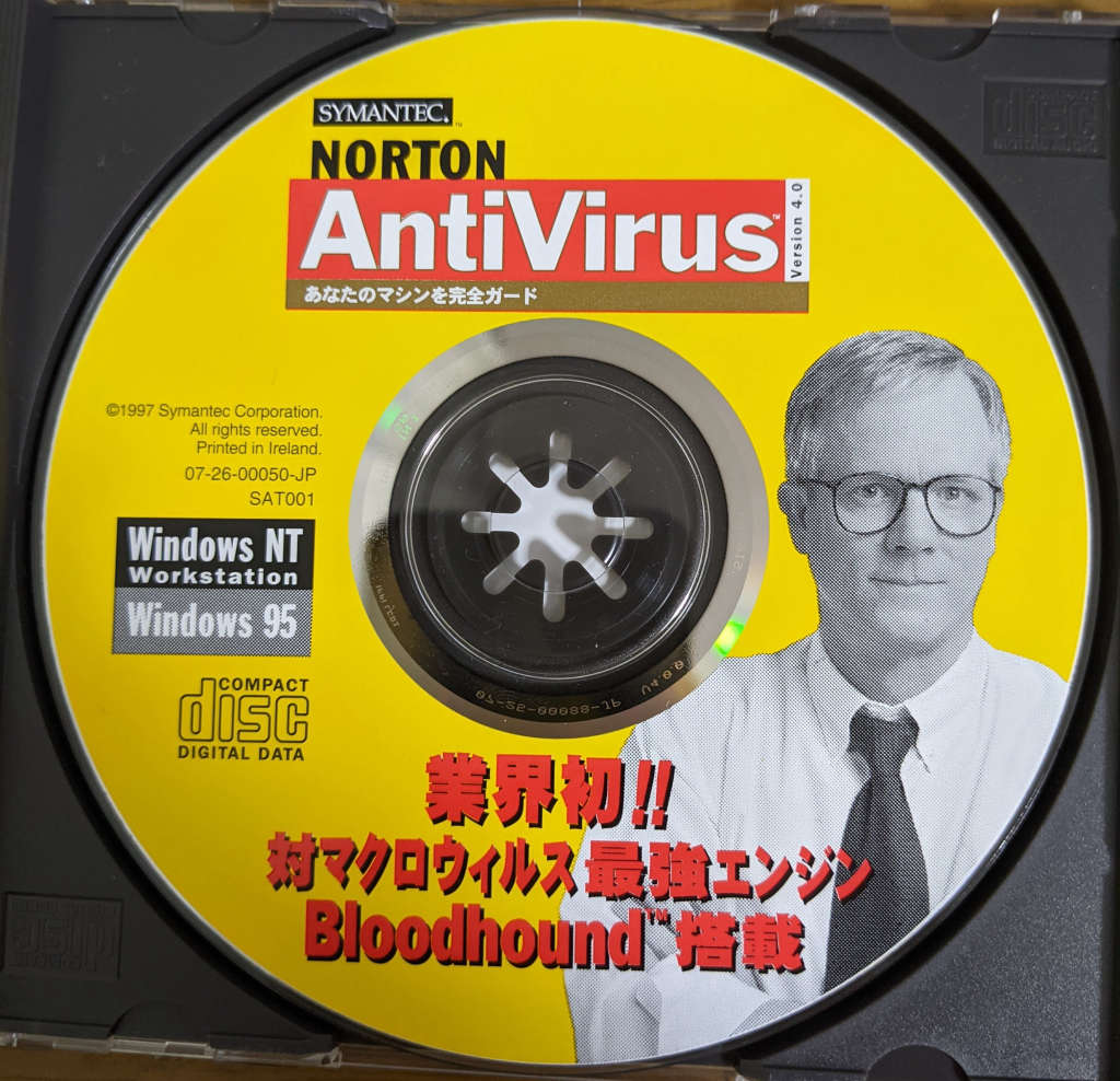 ここからしばらく黄色いパッケージが続くのでなんでかSYMANTEC系のソフトが続くみたい。 まぁ適当に別スタックからも取ってくるので連続しないようにとは思うが。 で、とりあえずNAV 4 for Windows