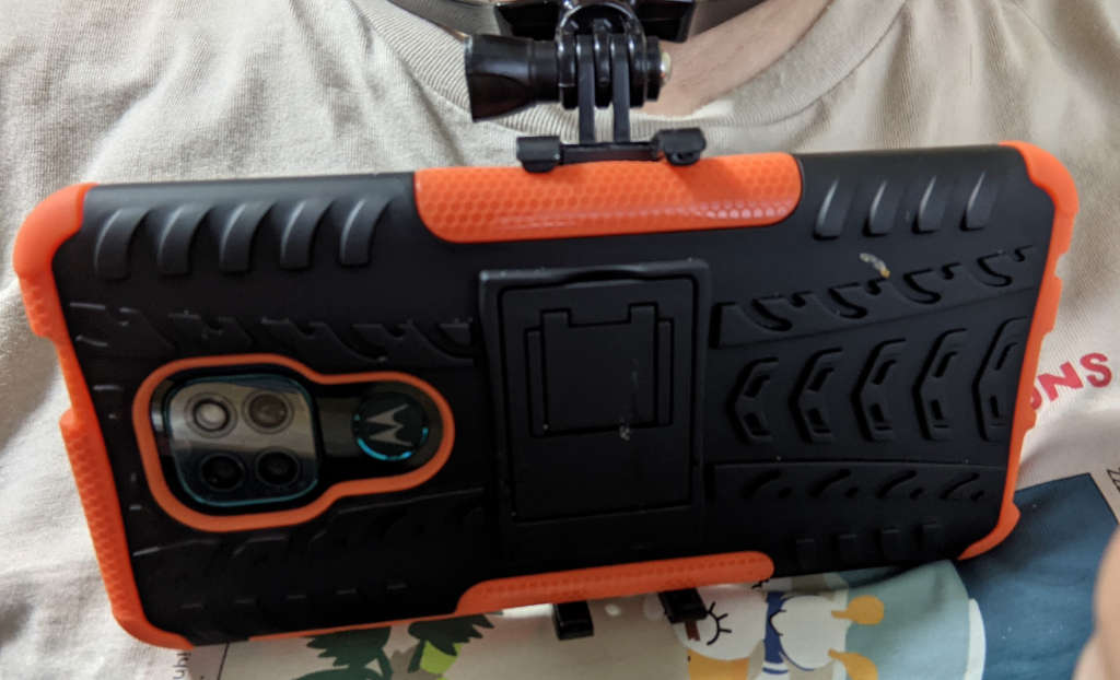 ストラップでの紐釣り形式のカメラだとぶれるのでアクションカメラ用の 固定リングに変えてみた。