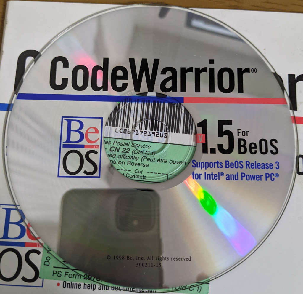 どうもBeOS用CWは海外輸入で買ってたようだ。 こっち https://akibakokoubou.jp/2021/09/14/codewarrior-for-beos-release-3 はそのあっぷグレードだったのかな。それともMac側からのオプション追加だったのだろうか。