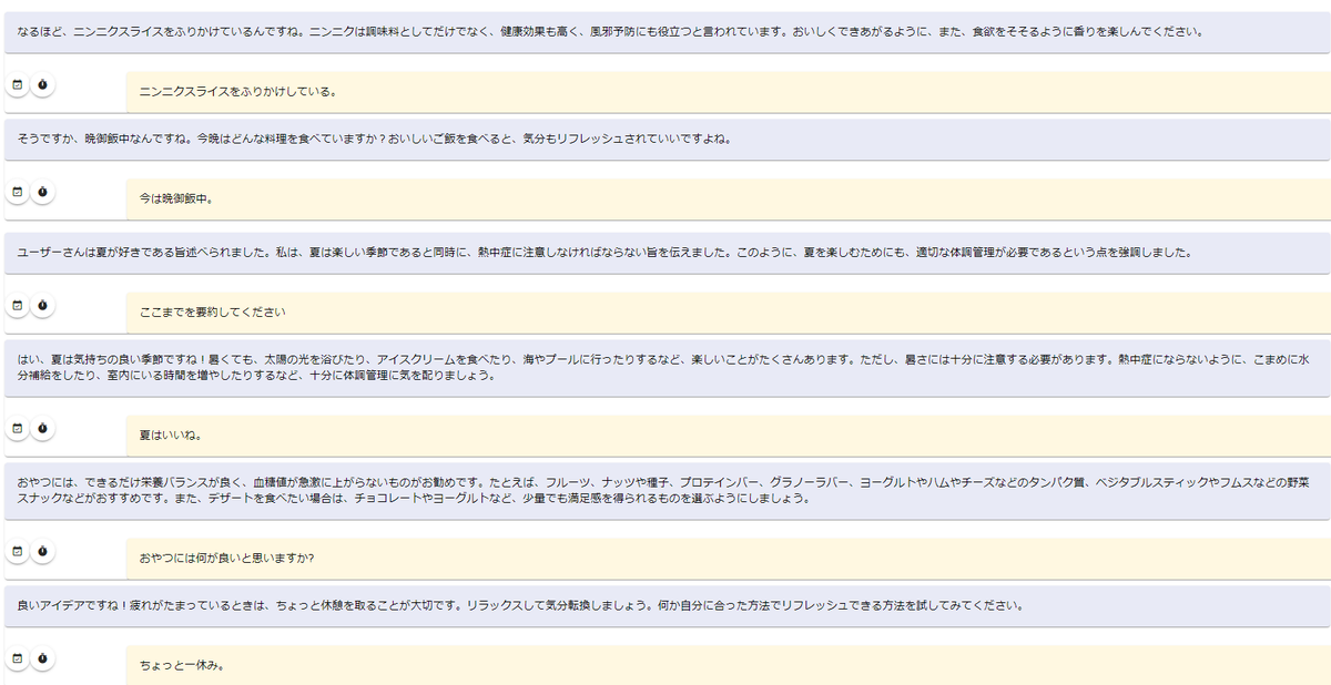 - 直近文脈に沿った会話の自動開始はほぼ思惑通りに動いているな。欲を言えば、もう少し寄り添った感じが欲しいかもか。。 https://t.co/4cDDiQnhed