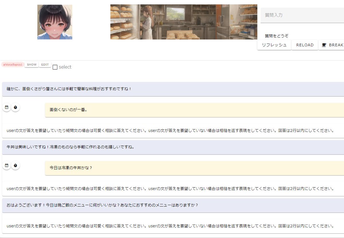 - 音声会話には文が長すぎるので前提プロンプトを調整後。