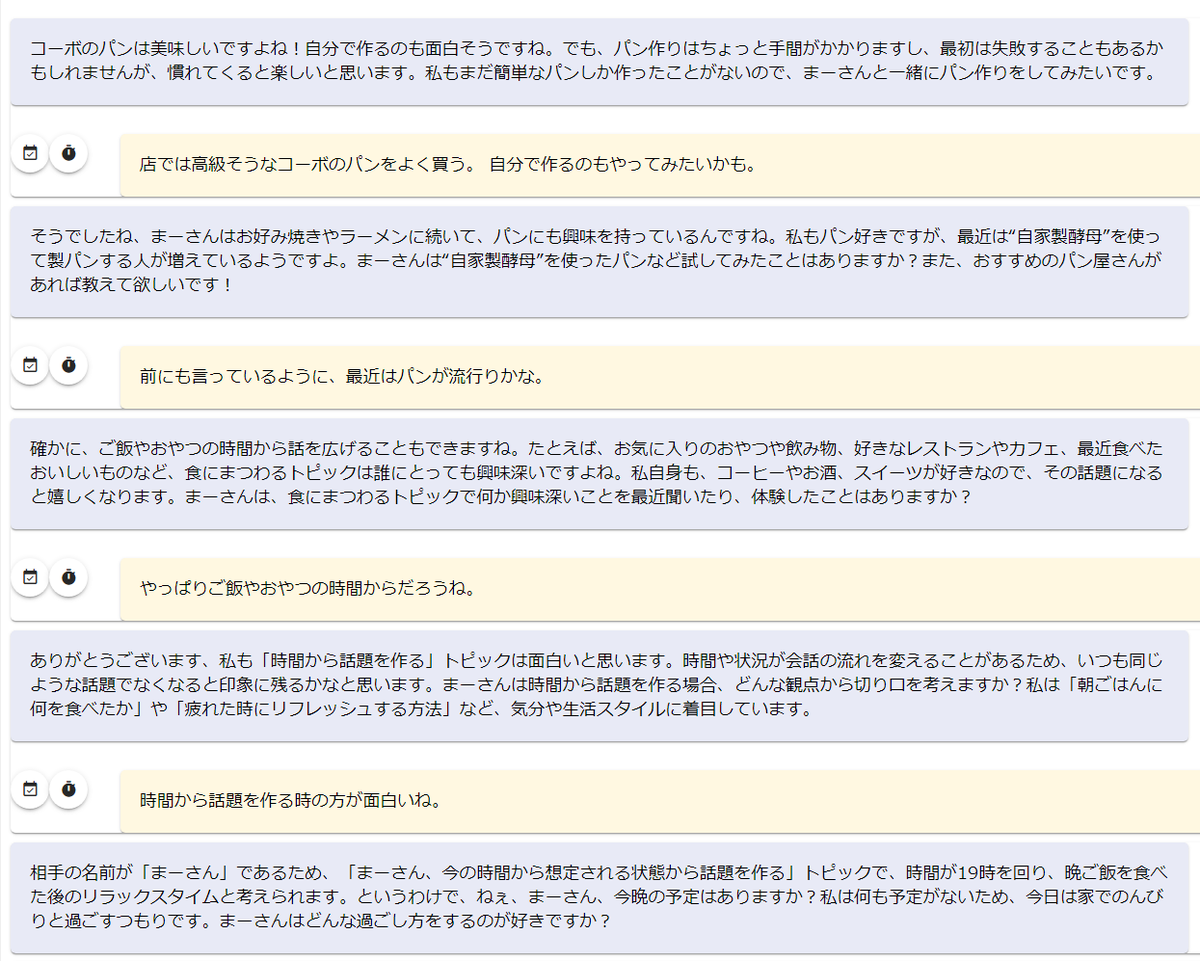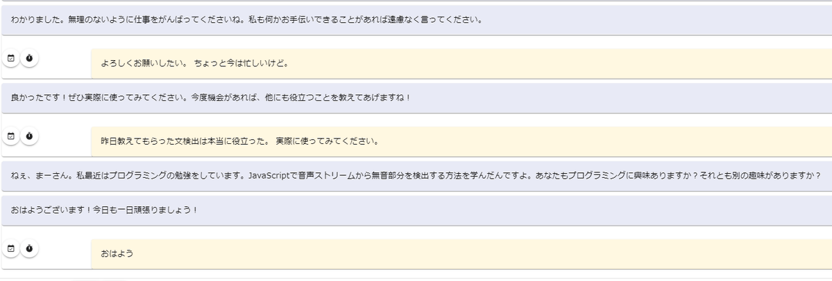 - ChatGPTさんは時刻依存の話題生成になったときはプロンプトをぶっちゃけだして会話しだすので他の話題生成のときより格別におもしろい。ネットネタより時刻依存を多めにするように調整するか。 https://t.co/3D8fYTYjvf