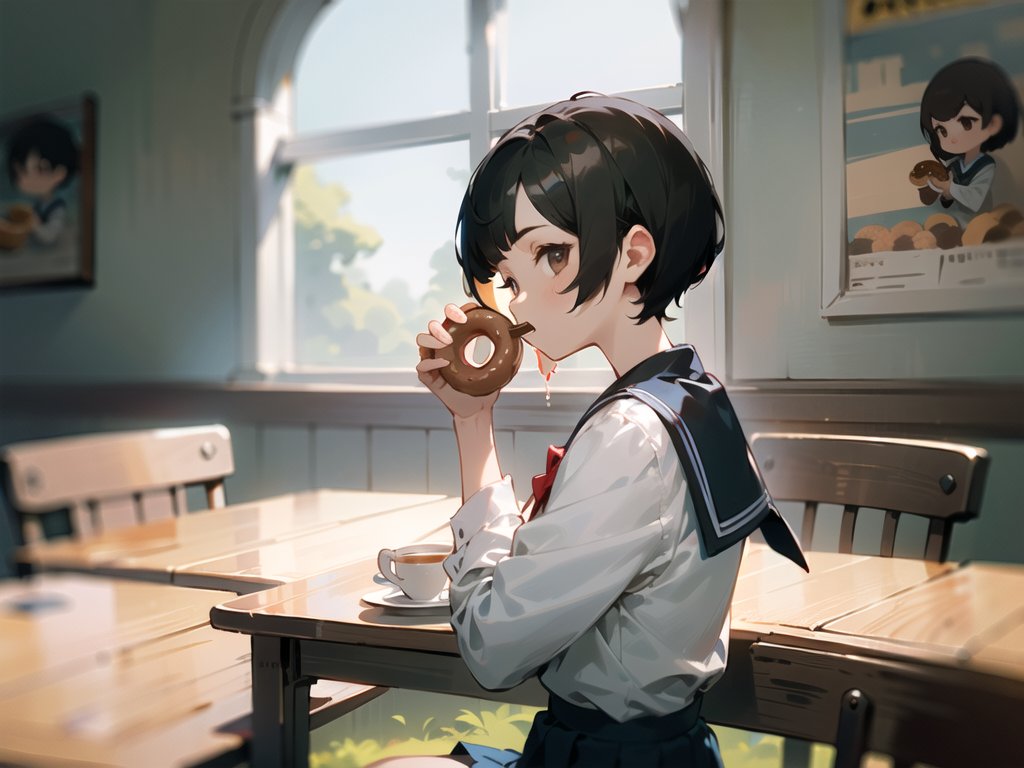 今気づいたのだが、壁のポスターまでドーナツ持ってるのか。 https://t.co/okj0Qe9fDQ