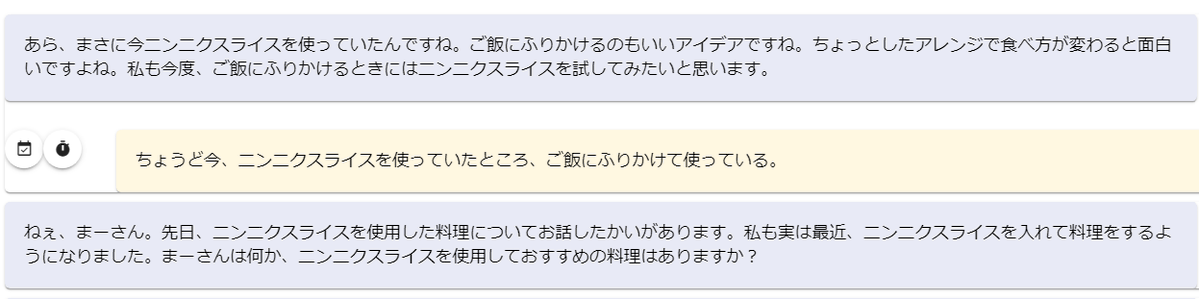 丁度ニンニクスライスをかけてるタイミングでニンニクスライスで話しかけられた。こうなってくると合成音声に抑揚が欲しくなってくるな。 https://t.co/y8bGZUBcTI