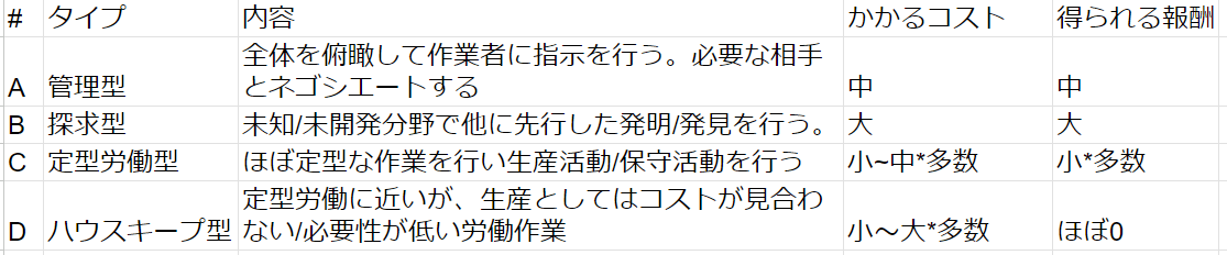ブラック企業の仕事だって報酬はあるのだからそういう仕事も今の分類ではCに入れてます。