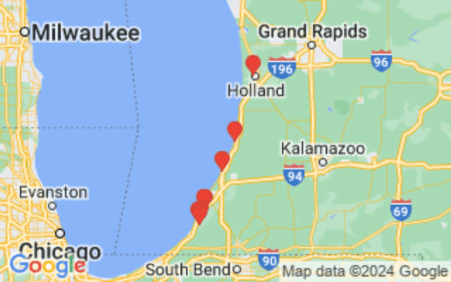 デトロイト方向ではありますが、ミシガン湖畔沿いでビーチが見えるコースを通っているところです。そろそろ内陸側に曲がる予定。