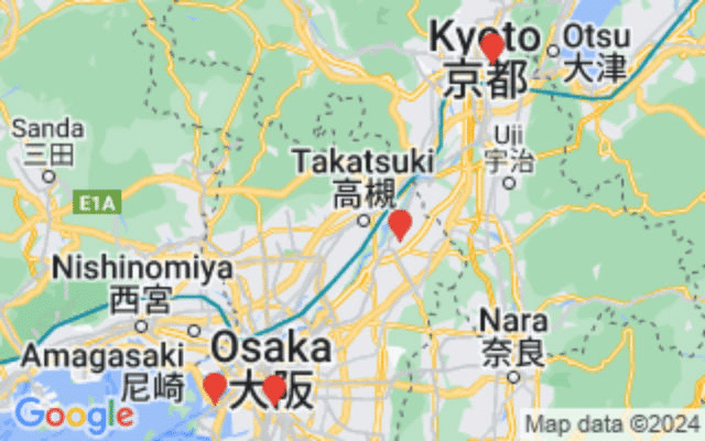 お疲れ様。京都から大阪に向かったところです。このあたりは観光名所が多いので細かく行き先設定したいのですが、逆に名所が多すぎて行くところを決めきれないですね。。
