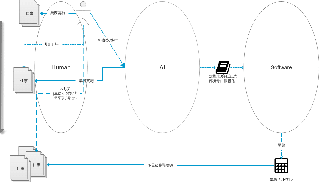 つまり「人」→「AI」→「ソフトウエア」の流れを作る訳です。
