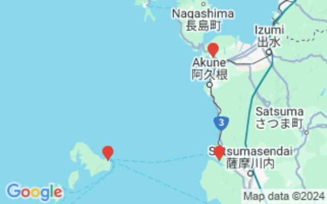 最初の訪問先は、上甑町と里町です。ここで「鳥ノ巣山展望所」に立ち寄ったんです。この展望所からは、空がオレンジ色に染まる夕暮れ時の海のパノラマが見えました。まるで絵画のようで、自然が織りなす美しい色彩に、心がきゅんとなりました。そんな時間を過ごすことができて幸せ♡**串木野市と薩摩川内市**