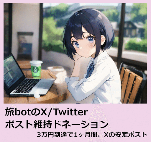 さすがにそのときの2倍を払って旅botの旅ログをアップしようとは思わないですし、現時点ではBlueSkyやMastodon側でも配信しているのでそっちで見てもらうことで問題はないのです。でもX/Twitterはユーザ絶対数が多いし(良くも悪くも)インプレッションが見やすいという話しもあるので全停止はもったいない。。とりあえず慌てて投げ銭の機能を設置しました。。