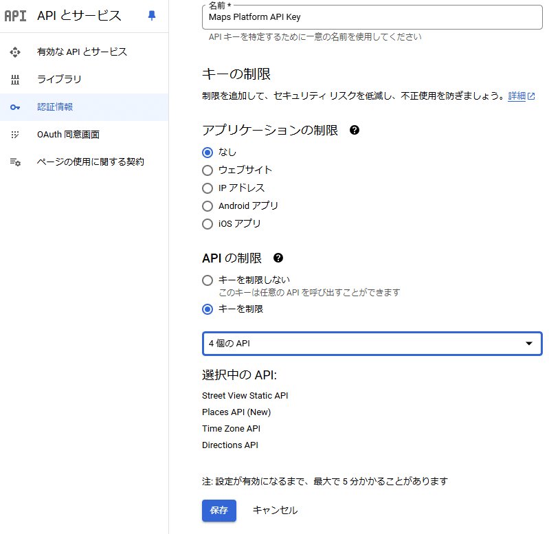 旅botにはGoogle map API で必要な権限は以下の4つです。