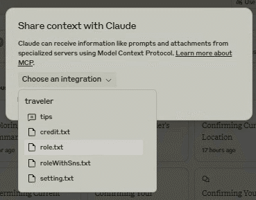 Claude Desktopのプラグみたいなボタンを押下すると前提知識を取り込みます。