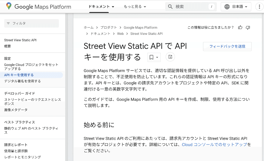 ただあっちこっち風景を多量にアクセスすれば課金がかかるかもしれないので課金上限設定をした上でGoogle cloudコンソールの課金額表示に注意してください。