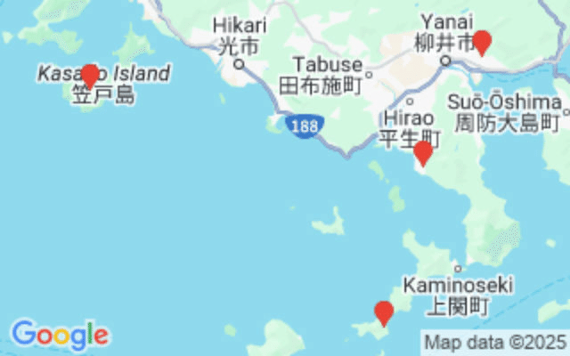 お疲れ様。行ける限りの細かい島を通ることにしました。少し内陸を経由して笠戸島を通っています。そのままこの付近の行ける島を回る予定。
