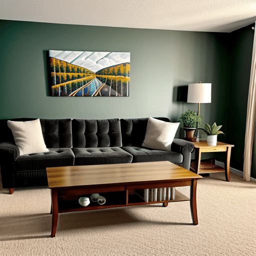 ソファの右側(本棚の近く)にフロアスタンドを設置することをお勧めします。この場所にフロアスタンドを追加することで、読書時の照明として実用的であり、また部屋の雰囲気も良くなるでしょう。
