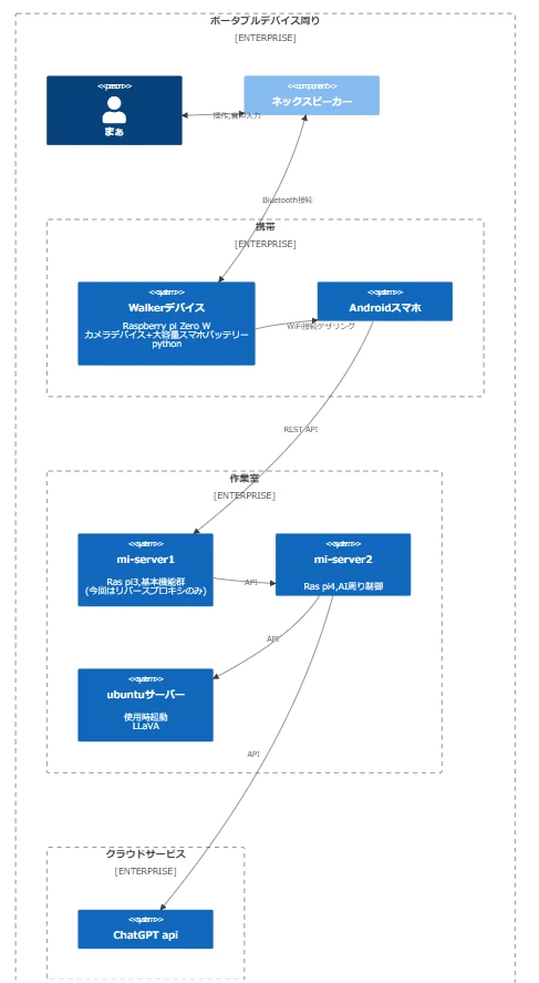 でも前回に描いたブロック図でいうと、ハード側の仕組みはほとんど変わってないんです。主にmi-server上の制御プログラムの追加改良とLLMそのものの性能向上によるものです。