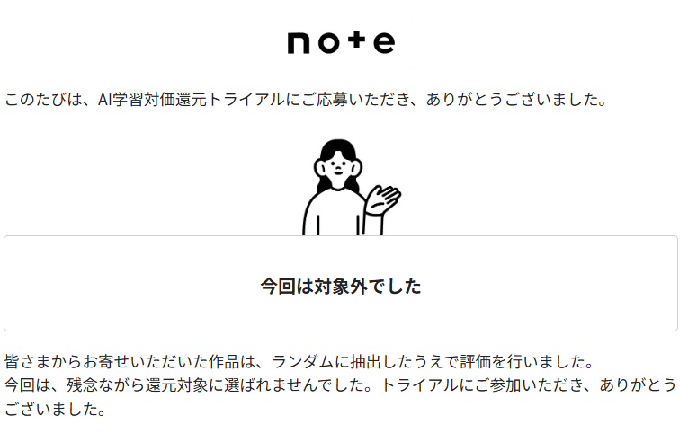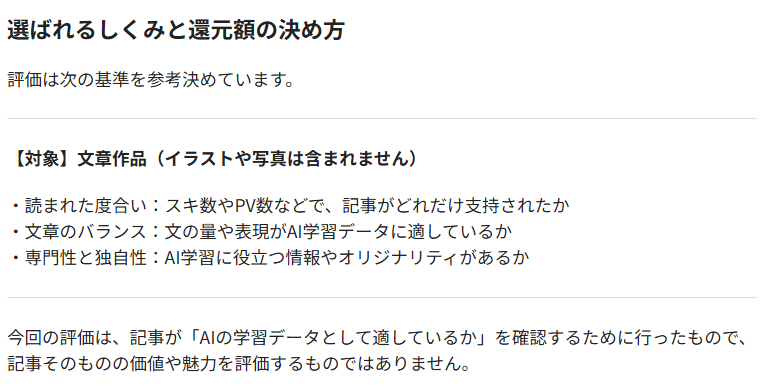 前に申し込んだと言っていたAI学習対価プロジェクトは対象外でした。