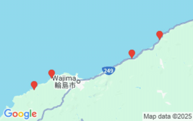 お疲れ様。そのまま能登を登って輪島市付近です。このあたりだと海岸線の岸壁が結構鋭そうです。海の幸が多そうなところですが、何枚か震災の跡も見受けられます。