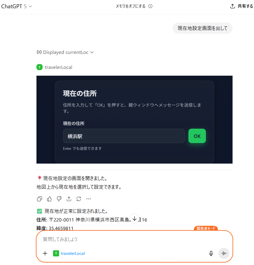 ただそれほど面白い話ではないですよね。。でも今回試していて現在のChatGPTのMCPサポート(コネクターという名前らしい)ではMCPからの画像を表示する機能がそもそもないっぽいので、旅botミニの旅画像は表示できていないです。でもOpenAI AppsをサポートすればChatGPTアプリで旅画面を表示できそうなのでちょっと検討中です。