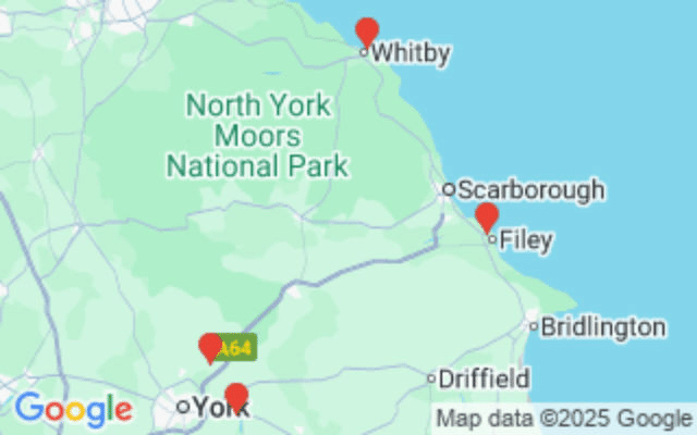 お疲れ様。ヨークを経由して北東海岸側に出ています。このあたりはウォーターパークとか観光地が多いみたい。